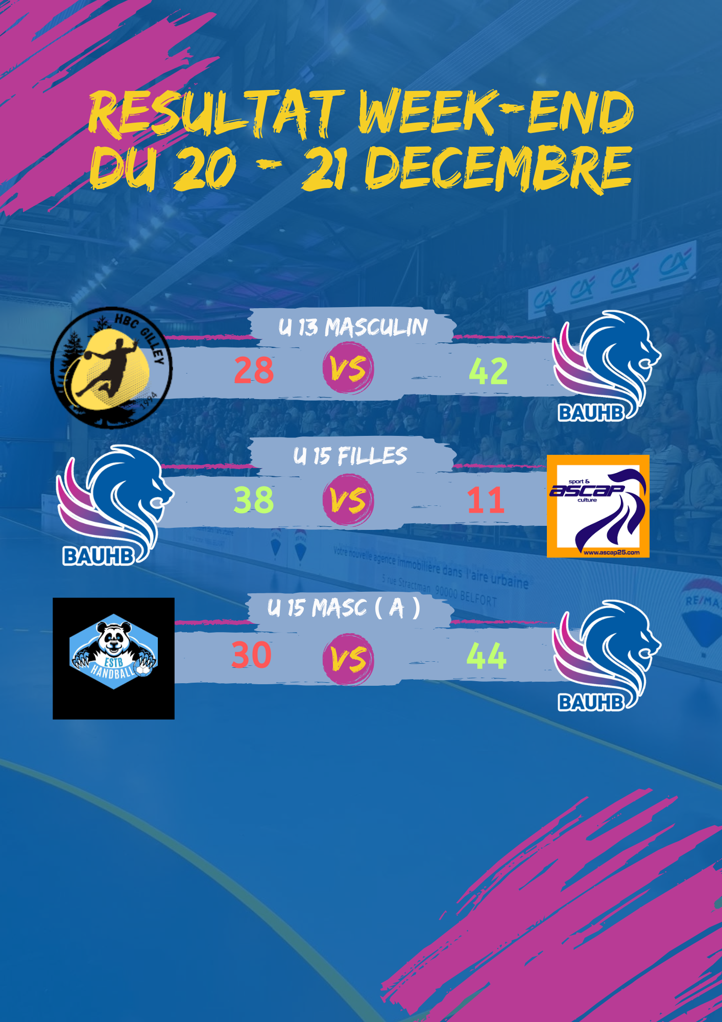 Suivez nos équipes aux dates de matchs et consultez les résultats.
